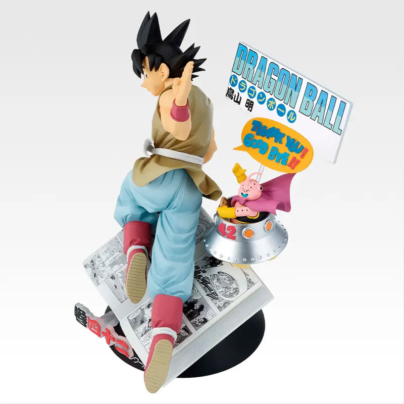 Goku and Majin Buu Comic Book Panel Figure (Vol. 42) (B Prize) from the Ichiban Kuji "Dragon Ball 40th Anniversary Part 1". This diorama figure recreates the cover of volume 42 of the manga, featuring Goku and Majin Buu, in a style that makes them appear to be stepping out of the panels. A nostalgic and detailed piece.