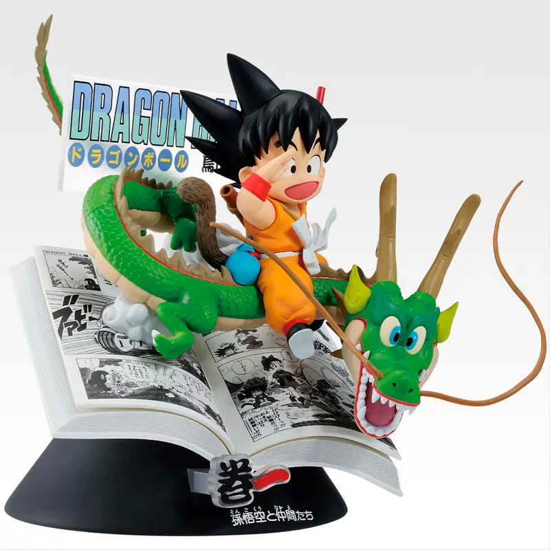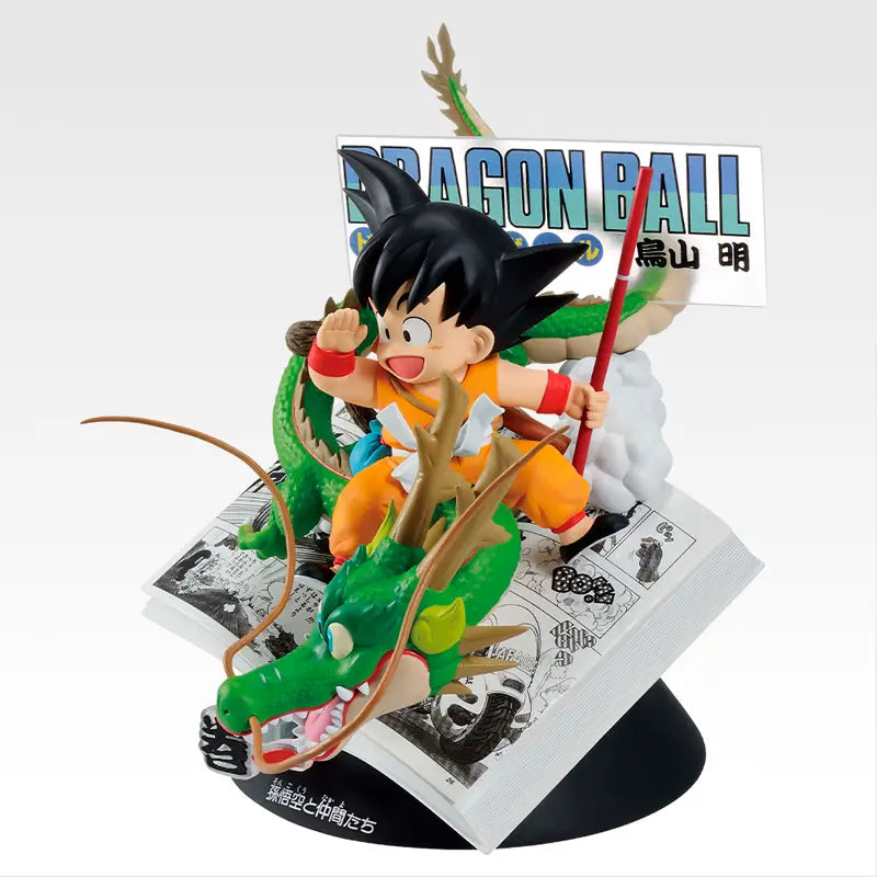 Goku Kid and Shenron Comic Panel Figure (Vol. 1) (Prize A) from the Ichiban Kuji "Dragon Ball 40th Anniversary Part 1". This special diorama figure captures the iconic cover of the first volume of the manga, featuring Goku Kid riding Shenron, recreated with a stunning panel effect. The top prize in the collection.