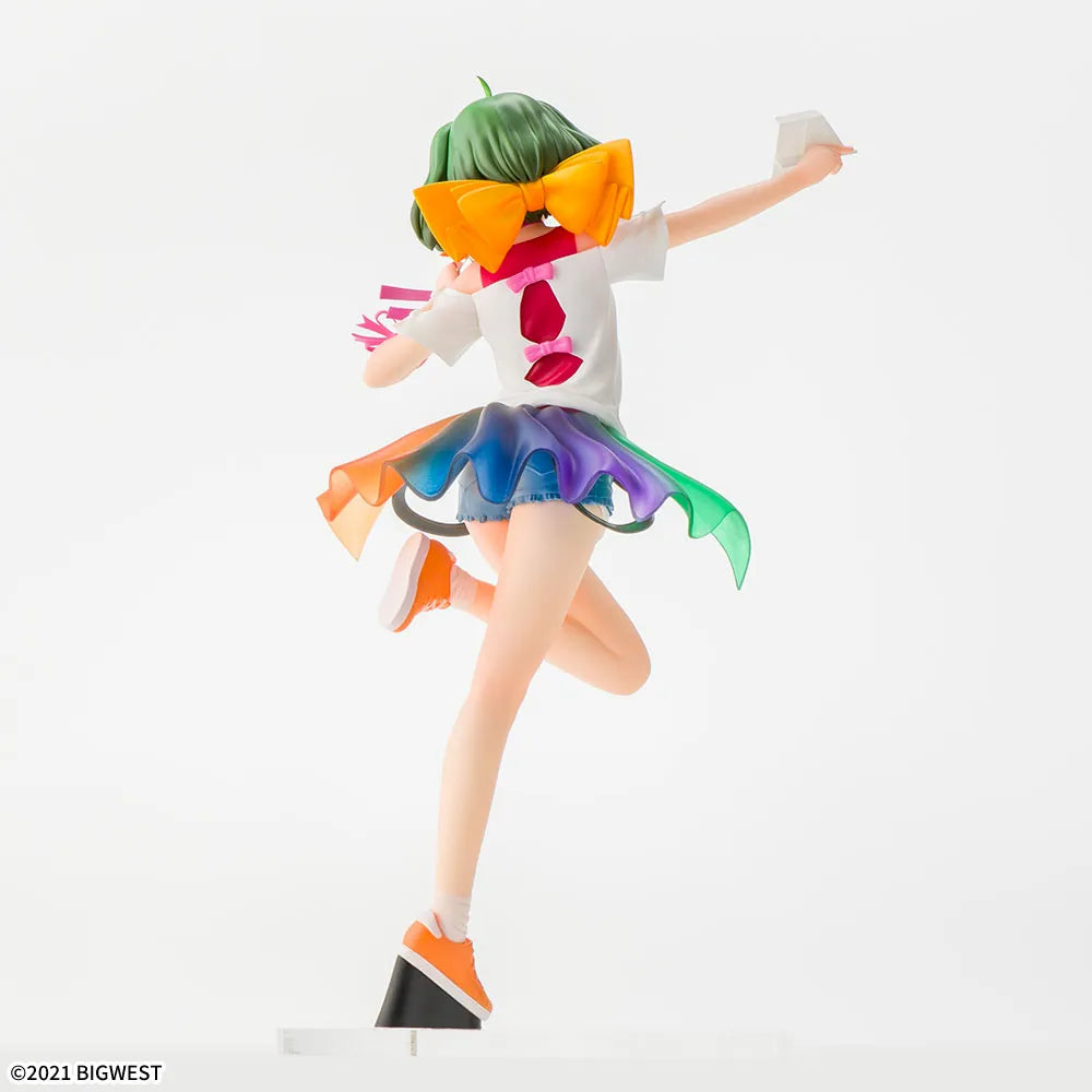 Immerse yourself in the Macross universe with this stunning depiction of Ranka Lee in her Labyrinth of Time form. This collectible captures the idol's charisma and energy in vivid detail, from her vibrant expression to the meticulous design of her outfit inspired by the series' musical performance.